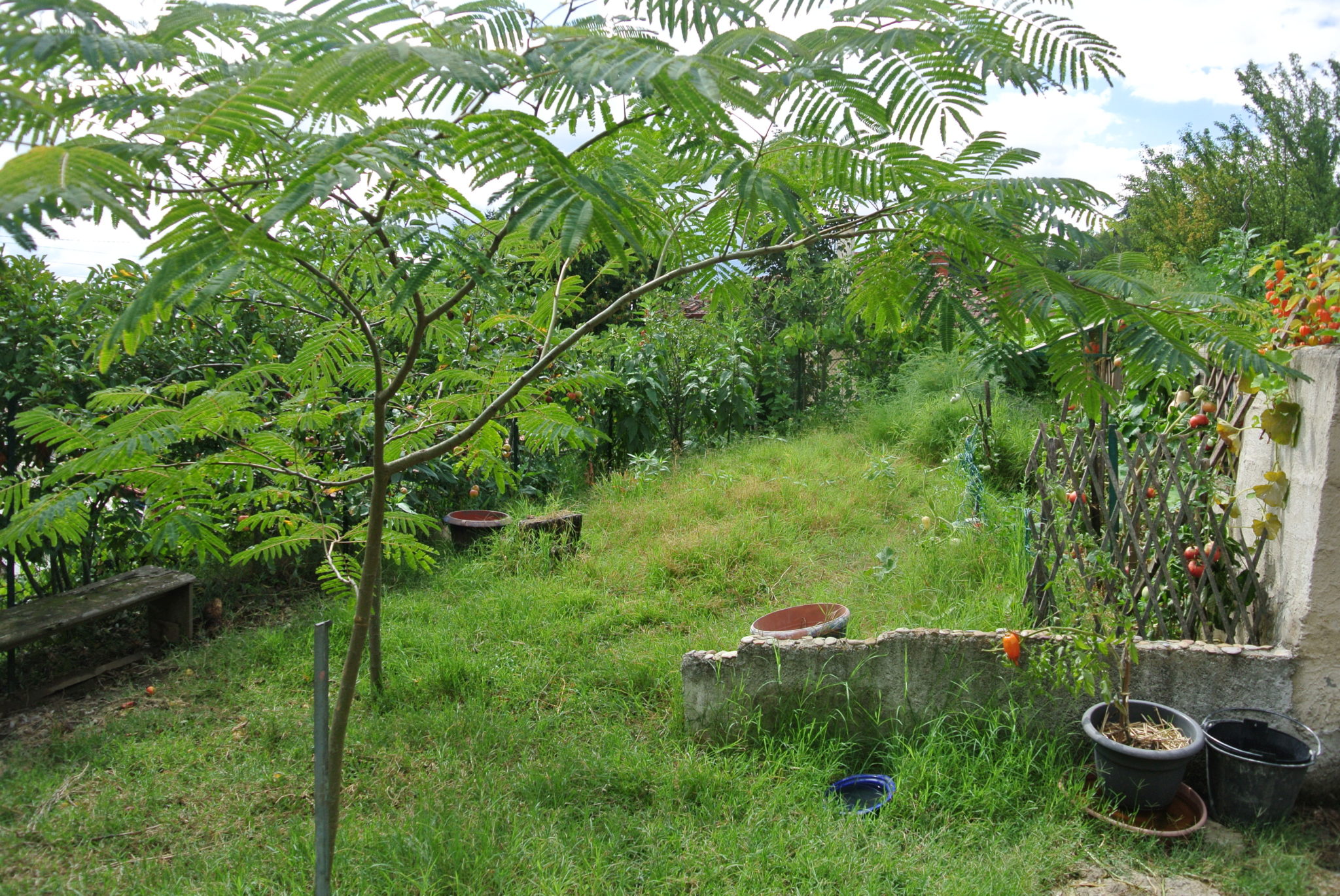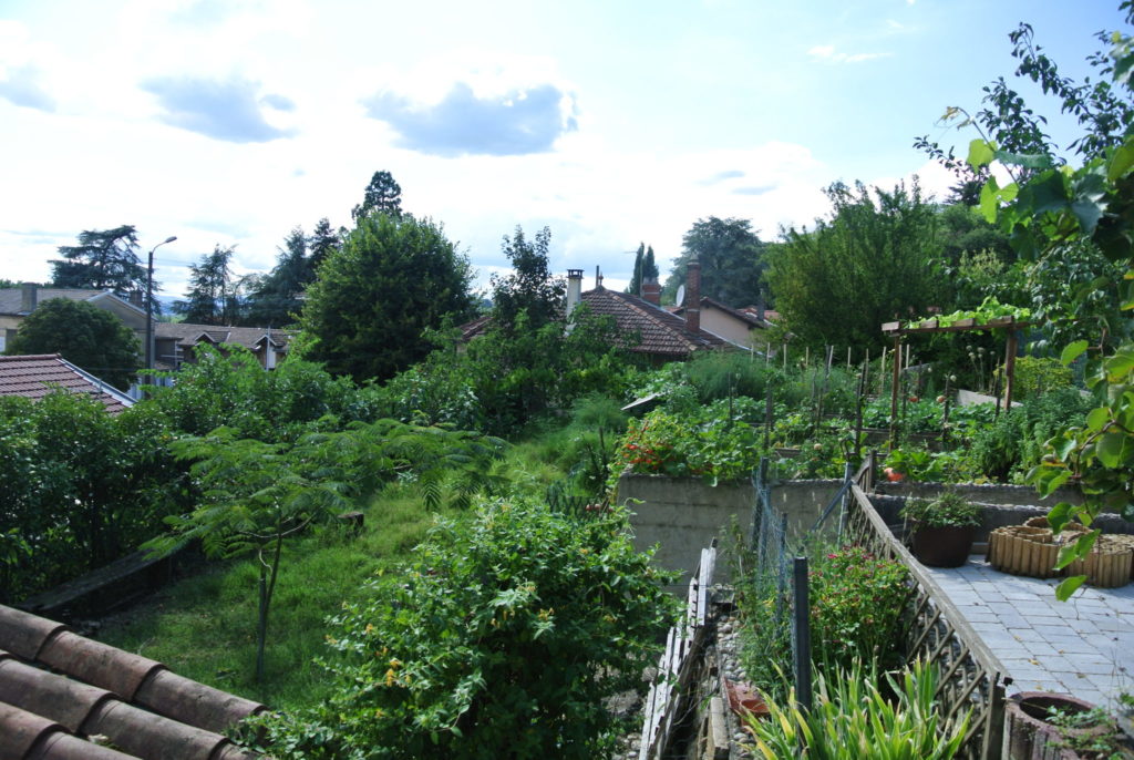 Des parties du jardin sont déjà cultivées mais il y a surtout des légumes qui prennent de la place et pousse facilement (courgette, courge, potimarron…). A part cela, la spécialité de la maison est la tomate ! D’autres zones du jardin ne sont pas exploitées.