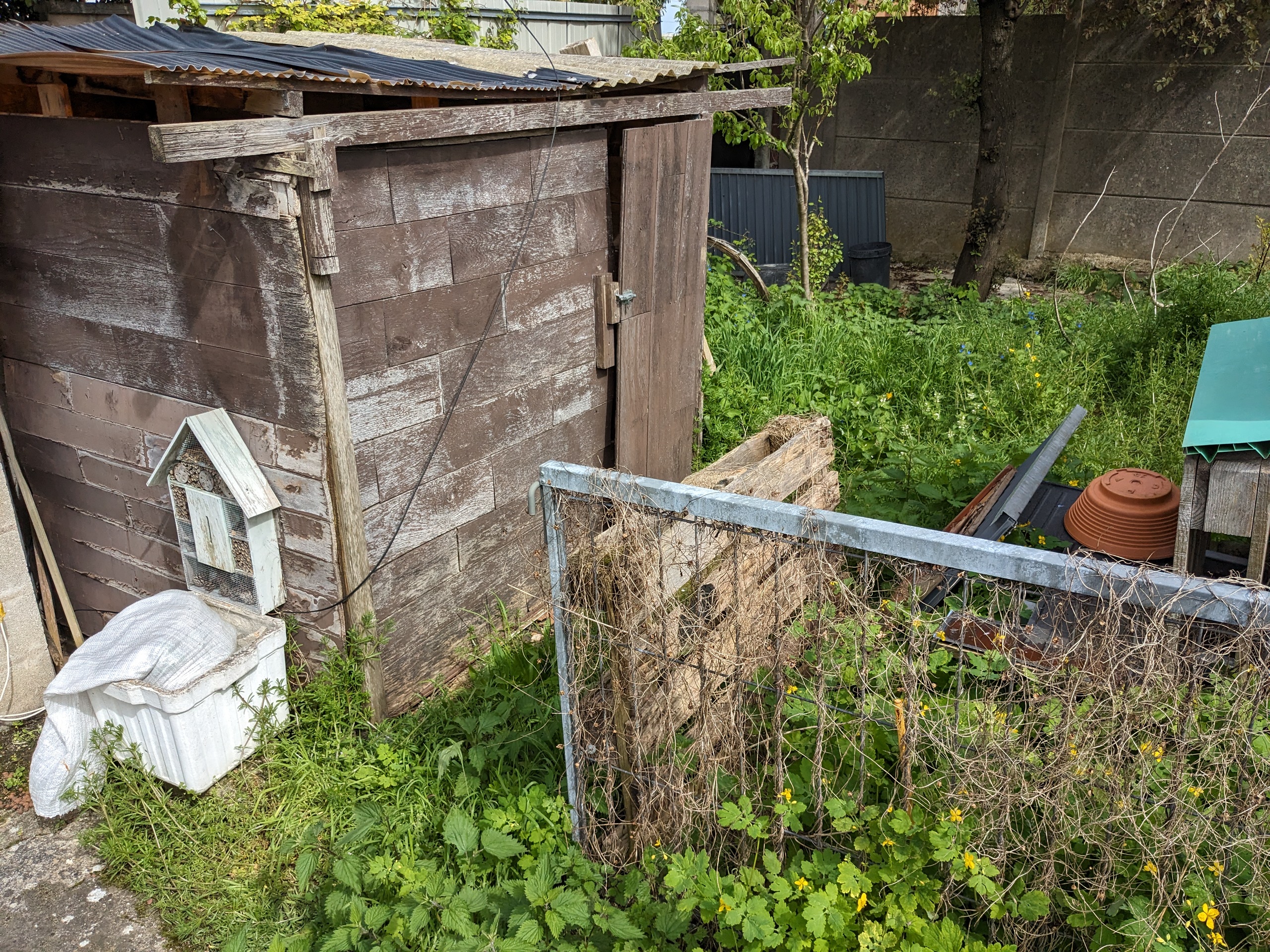 Jardin en jachère depuis 2 ans, poulailler, aquaponie, cabane , point d eau, récupérateurs eau de pluie, accès WC, lavabo.