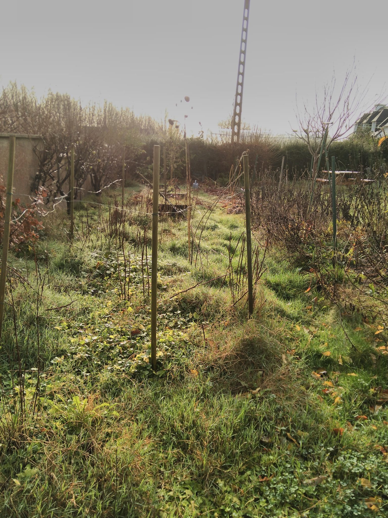 Il y a déjà des pommiers, des cassis, des framboisiers (de moins en moins, les mauvaises herbes ont empiété), et des pruniers.