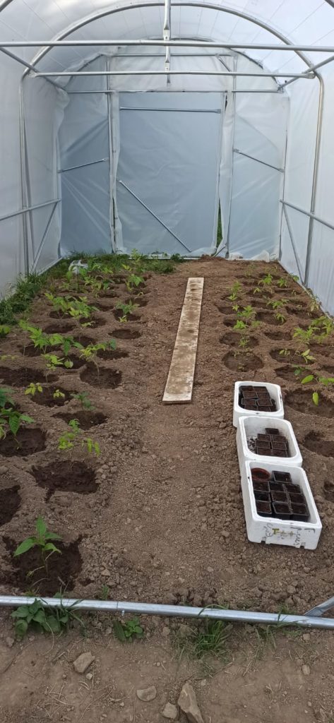 Il y a donc deux carrés d’environ 20m² ainsi qu’une serre de 18m², le tout avec des récupérateurs d’eau non loin, par contre je ne suis pas riche en outils…