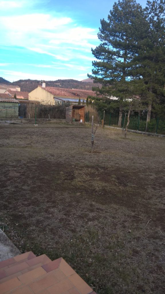 Jardin à partager, 500 m2 environ sur une surface totale de 1000 m2. Arbres fruitiers présents : 1 cerisier, 1 abricotier, 1 prunier, 1 pêcher, 2 figuiers. Cultures sur pallox déjà présentes. Outils de base pour le jardinage mais pas de tondeuse (entretien réalisé actuellement par un prestataire en CESU). Petit abri de jardin en place, compostage, Eau à volonté grâce au canal ASA (d’avril à septembre), arrosage intégré. Mise à disposition du jardin dès ce printemps.
