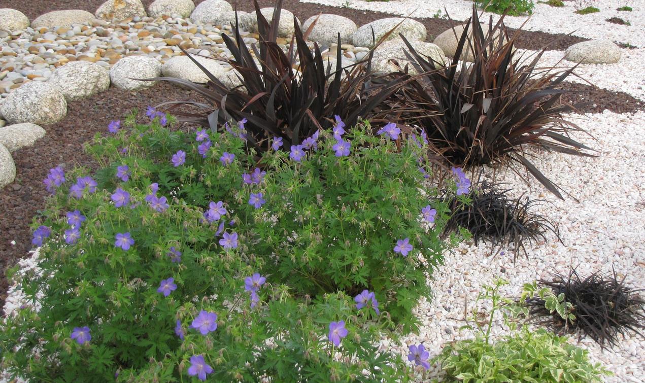 Un jardin sur gravier n’est pas un jardin japonais. Sur un tel jardin, vous pouvez faire des mélanges de fleurs, d’arbustes, de plantes tapissantes ou de bordures. Ou même en faire un espace du type méditerranéen.