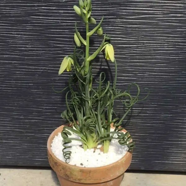 Albuca spiralis en pot plastique de 9 cm de diamètre ou en pot en terre de 11 cm de diamètre.