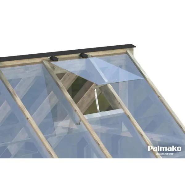Une lucarne de toit, avec un système d’ouverture automatique, permet de ventiler de la serre et de maintenir une température idéale à l’intérieur.